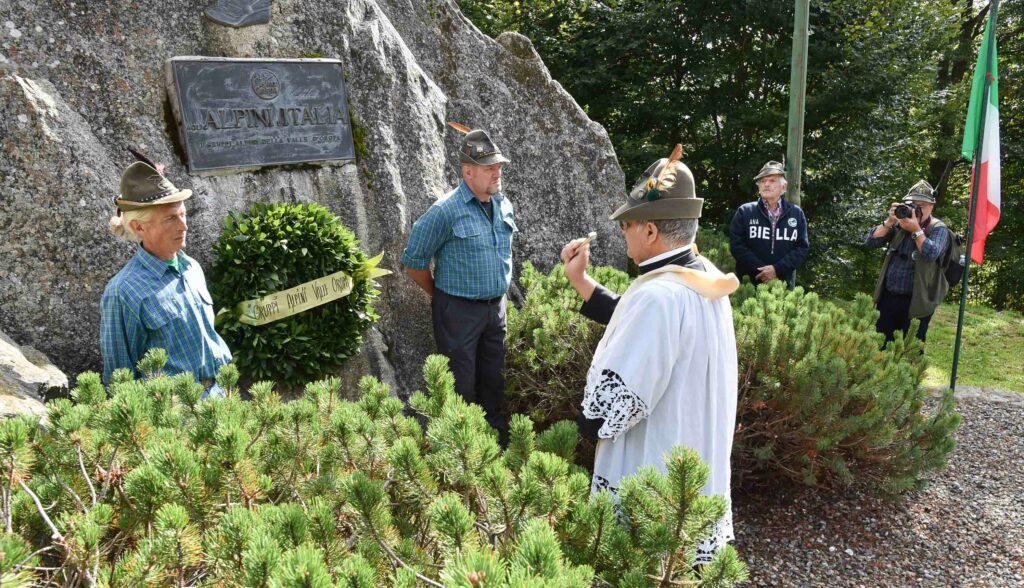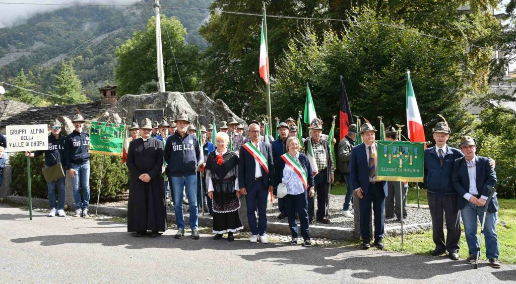 L’ammassamento dei partecipanti si è svolto presso i cancelli di Oropa e poco dopo le 10,30 è iniziata la sfilata accompagnata dalla fanfara di Pralungo. Presenti numerosi gagliardetti della Sezione di Biella oltre a quelli di Verezzo, Baiardo (IM) e Fontainemore (AO); presente anche il vessillo di Imperia e della Sezione di Biella accompagnato dal nostro presidente Marco Fulcheri; presente il Sindaco di Pralungo Sig.ra Raffella Molino e il Dott. Gallello Domenico in rappresentanza del Sindaco di Biella. A seguire presso il monumento dedicato agli “Alpini d’Italia” si è svolto l’alza bandiera, onore ai caduti, l’inno Nazionale e la benedizione.