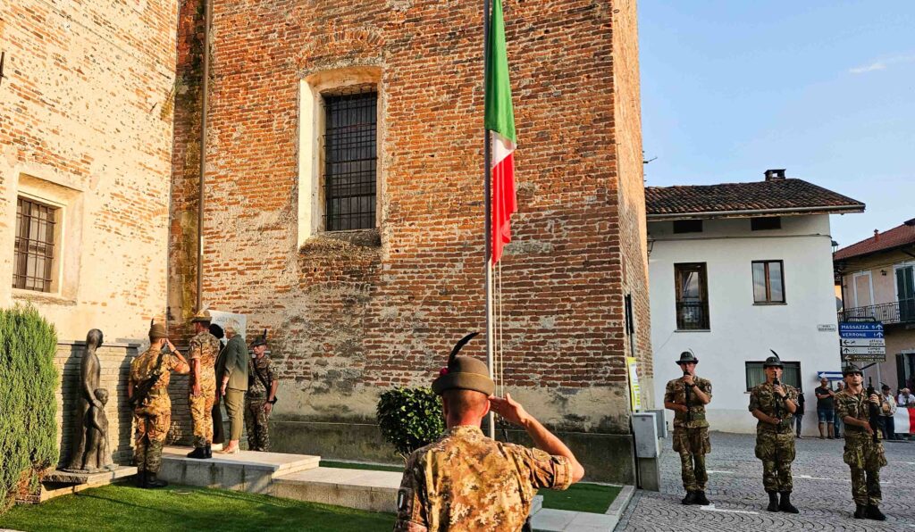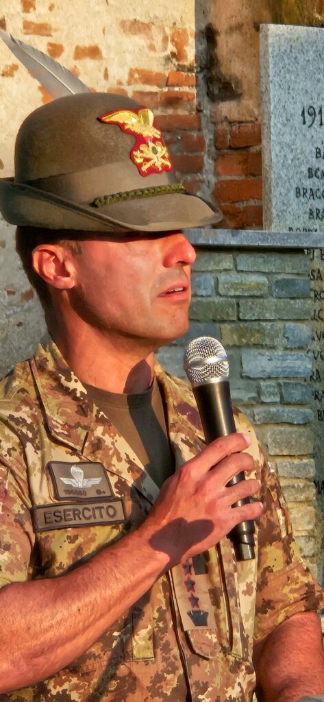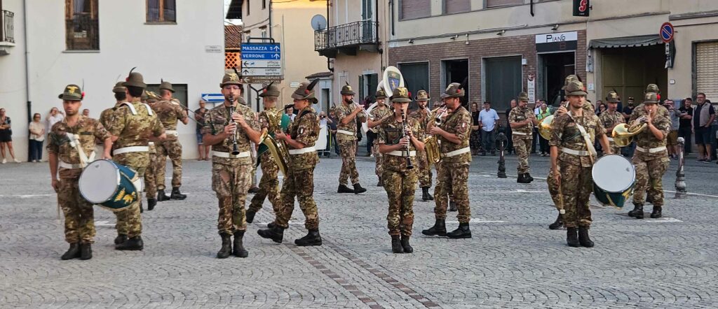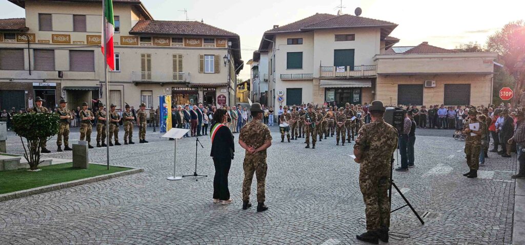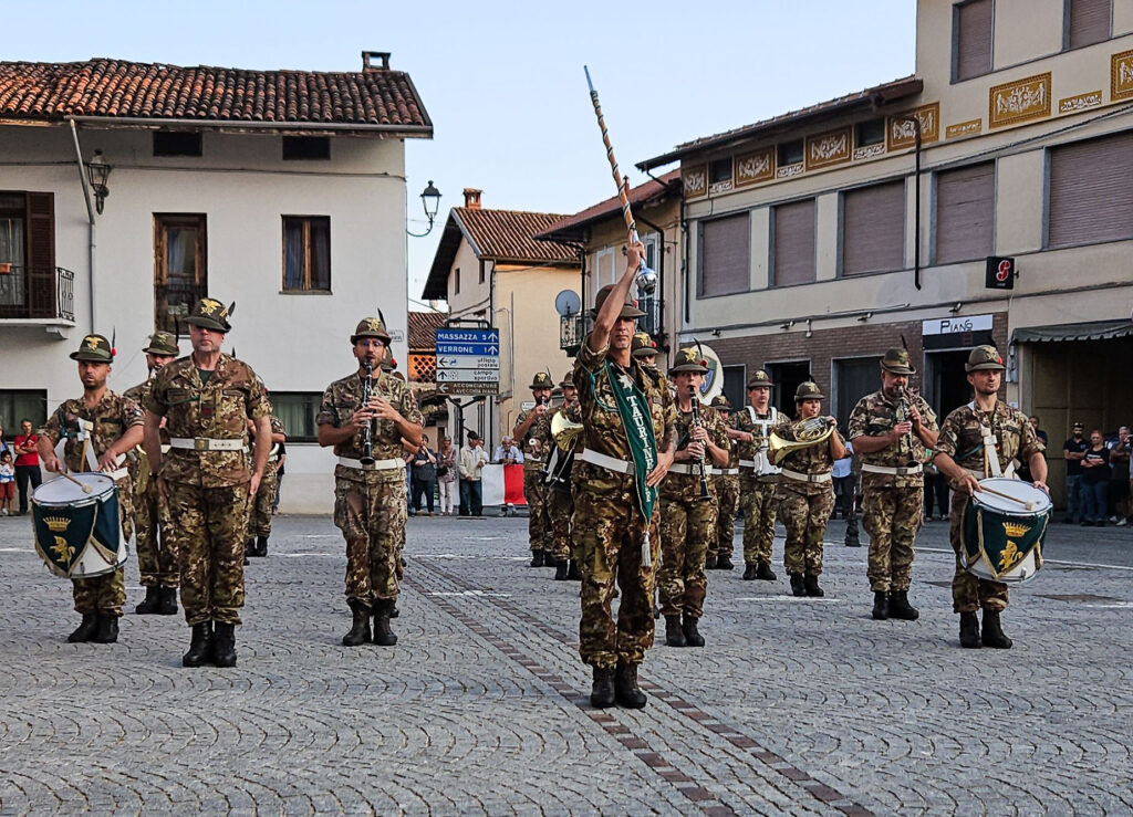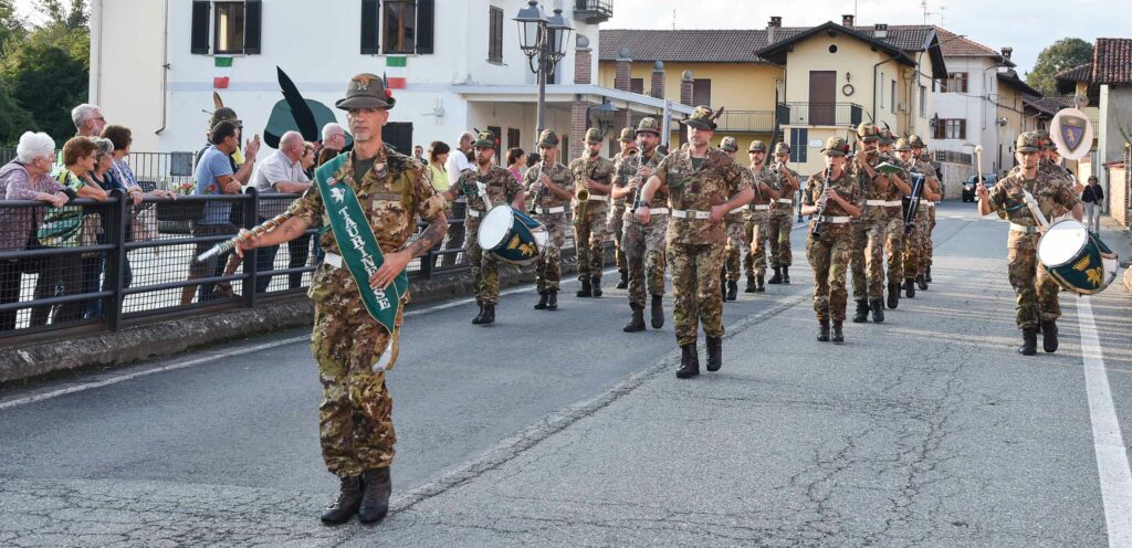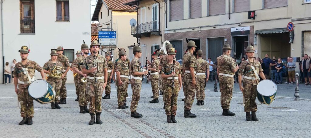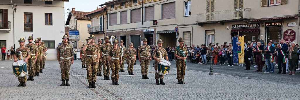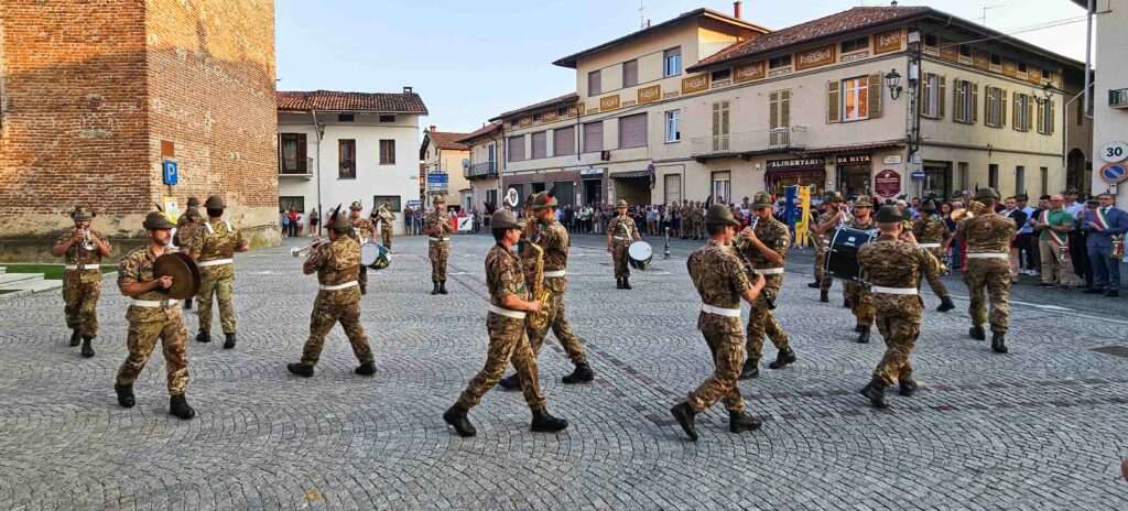 Nel tardo pomeriggio, alla presenza di diversi Sindaci biellesi, della Consigliera Regionale Elena Rocchi e di tanti Alpini e cittadini, in Piazza Marconi si è tenuta la Cerimonia in Onore dei Caduti col picchetto in armi, seguita dai discorsi del Comandante Colonnello Silvestro Cittadino e del Sindaco Cristina Sitzia, durante i quali entrambi hanno rimarcato il valore del forte legame che unisce gli Alpini del Reggimento al Biellese, per concludersi con l’emozionante e partecipata esibizione della Fanfara Alpina Taurinense, per la prima volta a Benna. foto: Stefano Socco