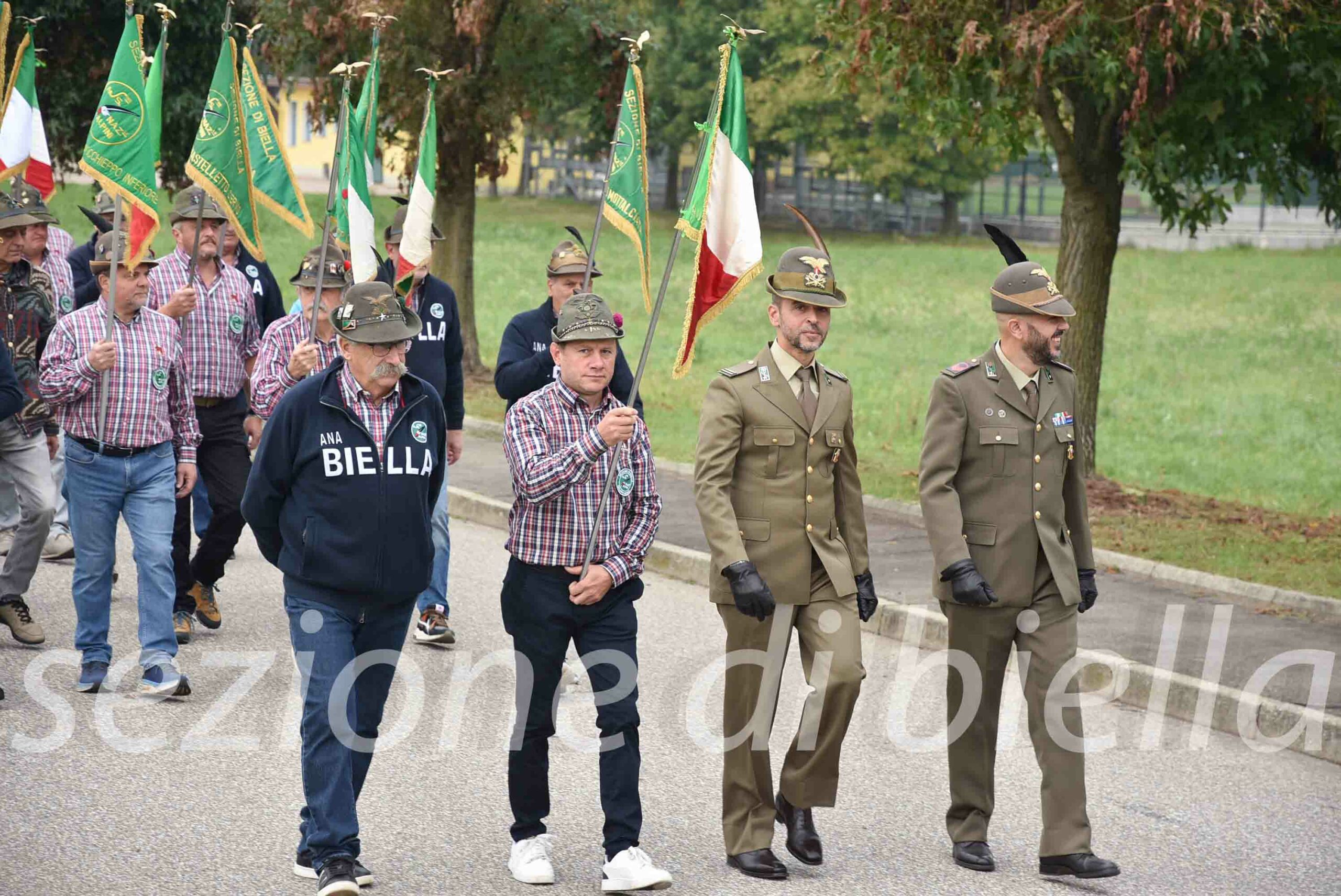 La giornata di domenica ha preso il via con l’alzabandiera alla sede del Gruppo Ana sulle note dell’inno d’Italia suonato dalla Fanfara di Pralungo, il partecipato corteo guidato dal Gonfalone del Comune, dal Vessillo della Sezione di Biella scortato da una rappresentanza di Alpini in Armi del 32° Genio Guastatori di Fossano e da tanti gagliardetti della Sezione Ana locale e non solo, ha raggiunto Piazza Marconi per la deposizione di un omaggio floreale al monumento dei Caduti e per la Messa celebrata da Don Paolo.