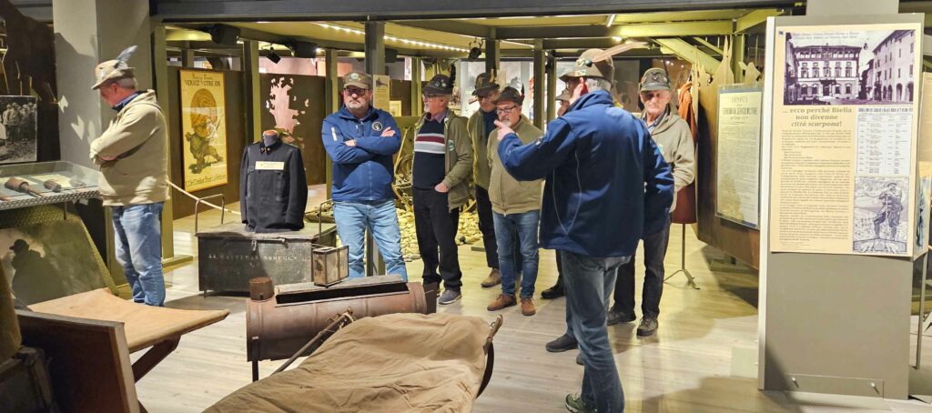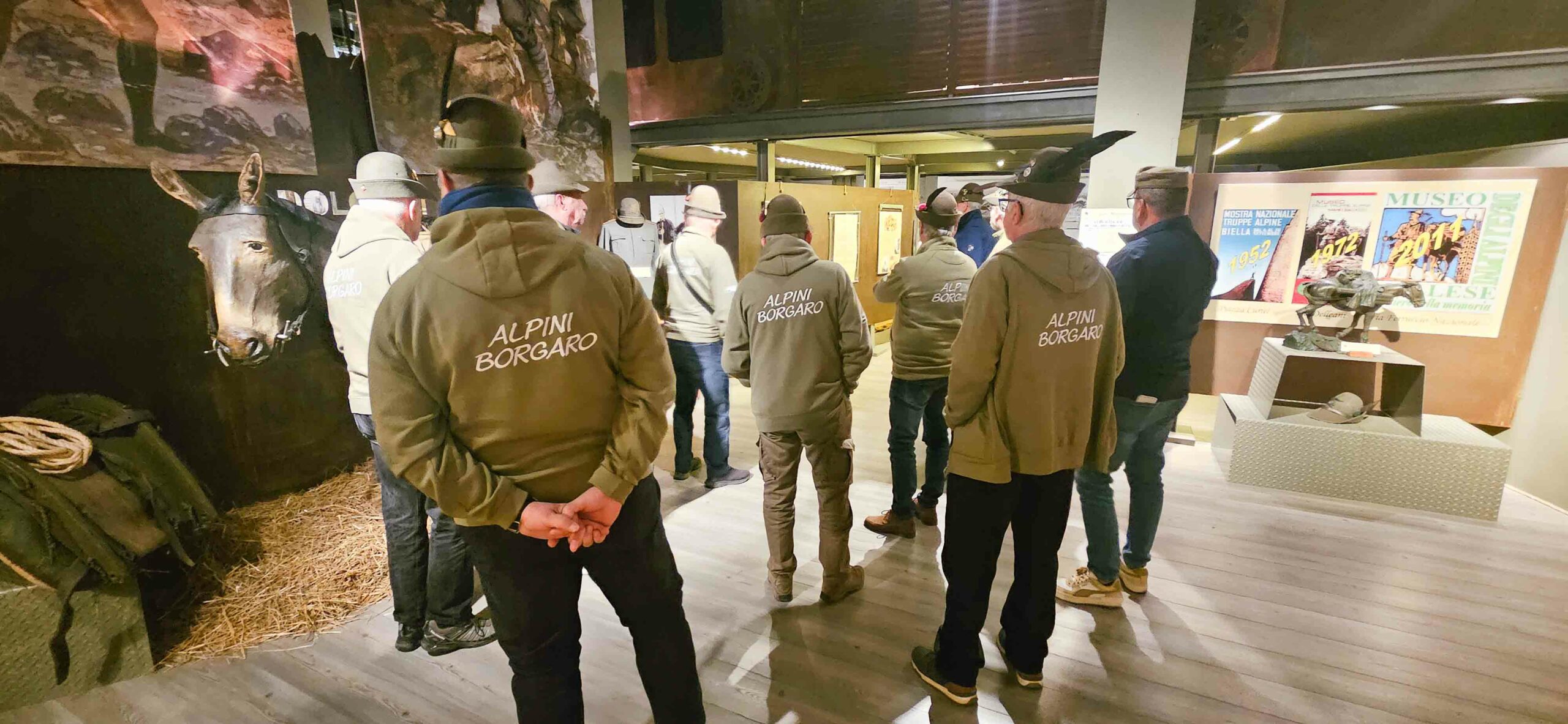 Su invito del Gruppo Alpini di Pralungo della Sezione di Biella, sabato 28 marzo un nutrito gruppo di Soci del Gruppo Alpini di Borgaro Torinese, si è recato presso la sede sezionale di Biella, per una cena conviviale a base di polenta e “fricc del marghè” piatto tipico delle valli biellesi e magistralmente preparato dalla brigata di cucina del gruppo alpini guidato da Federico Forgnone. Prima della cena, gli alpini borgaresi hanno fatto visita al Museo Biellese degli Alpini, accolti dalla guida museale, l’alpino Piero Landoni, che li ha guidati lungo il percorso storico proposto nel museo. Un percorso che parte dalla fondazione delle Truppe Alpine, per concludersi, dopo aver ammirato i rarissimi reperti storici presenti nelle stanze del museo, nell’allestimento di una classica camerata della truppa, degli anni 70/80. Molto commovente la sala contente le fotografie di tutti gli alpini Medaglia d’Oro, medaglie presenti sul nostro Labaro Nazionale. Al termine della visita ha avuto inizio la cena, durante la quale, gli alpini borgaresi hanno voluto donare al Capogruppo Forgnone, ringraziandolo per la bella serata, il crest della Sezione di Torino “La Veja”.