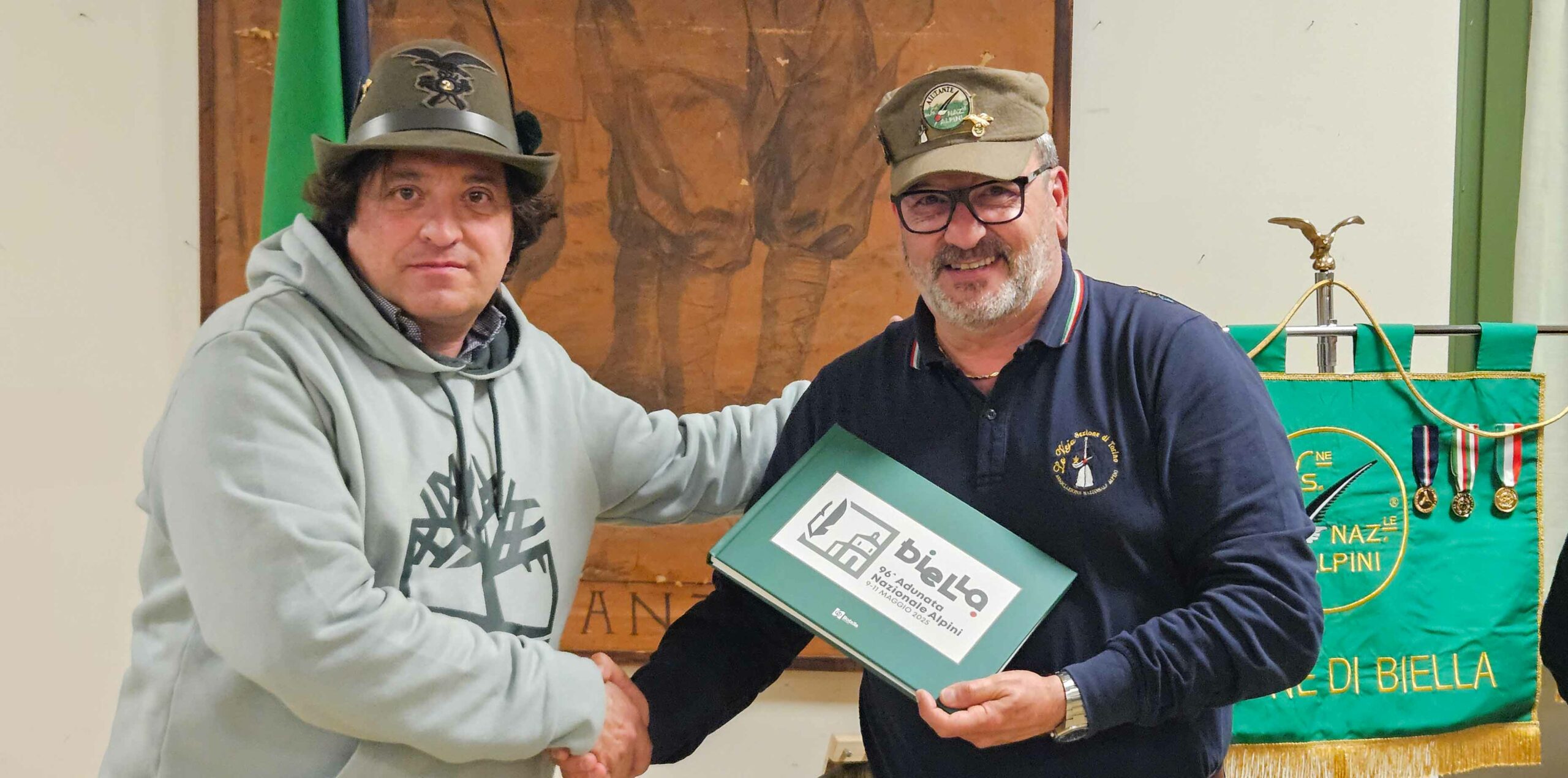 Gli alpini di Biella, per mano del Consigliere Paolo Massaro, dopo aver ringraziato Luca Marchiori per il gradito dono “…che troverà sicuramente uno spazio adeguato nel nostro Museo”, lo hanno omaggiato del libro fotografico in ricordo della 96^ Adunata Nazionale di Biella del maggio 2025. Luca Marchiori foto:Stefano Socco