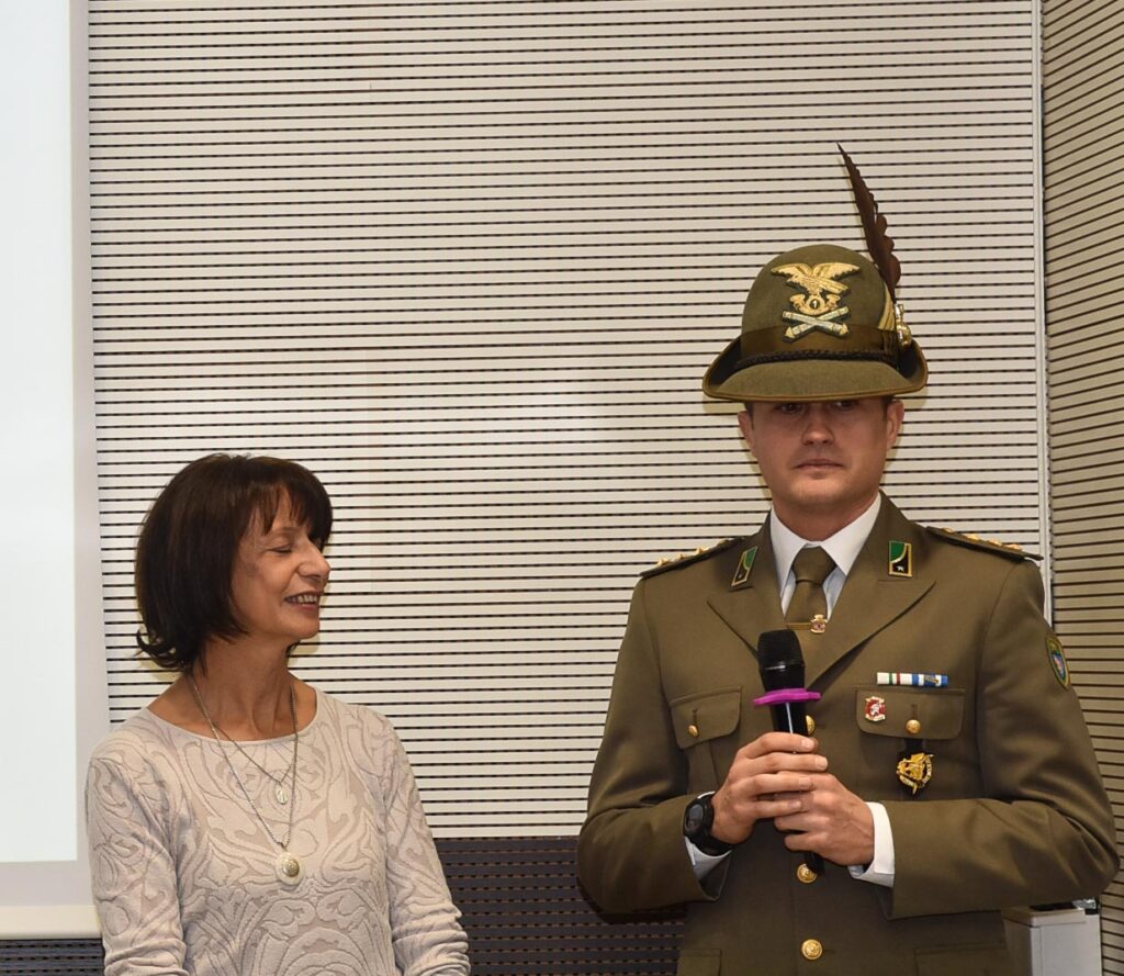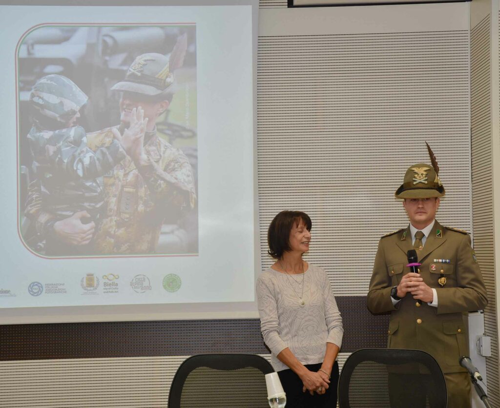 La fotografia del manifesto pubblicitario ritrae il capitano Federico Conti di origini biellesi e presente all’inaugurazione e nella cittadella militare allestita dalle Truppe Alpine a maggio.