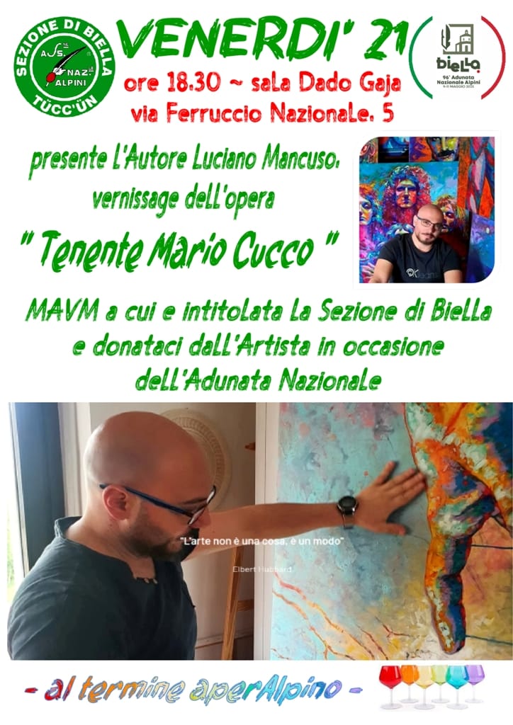 Biella, _ 2025 — L’artista biellese Luciano Mancuso, riconosciuto tra le eccellenze italiane per la sua ricerca originale e contemporanea, rinnova il suo legame con il territorio con un gesto di grande valore simbolico e civile: la donazione di un’opera dedicata al MAVM Tenente Mario Cucco, figura a cui è intitolata la Sezione ANA di Biella.