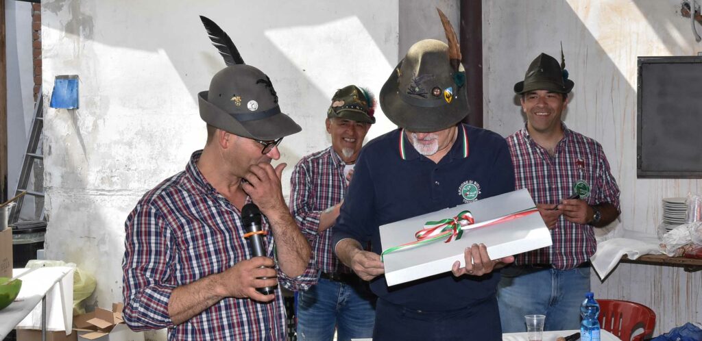 L’adunata è finita, i complimenti si sono sprecati, le pacche sulle spalle fanno però ancora piacere ma gli impegni associativi vanno avanti. Domenica 25 maggio a Milano si è tenuta l’annuale assemblea dei Delegati con l’elezione del presidente nazionale. Come da tradizione, al rientro è la “panissa” del gruppo di Carpignano a farla da padrona. Ma…. quest’anno il capogruppo Fabio Bonassi con la complicità di tutto il suo gruppo e non solo, con un sotterfugio, organizza “una panissa a sorpresa” per rendere un ulteriore ringraziamento a chi fortemente ha voluto e si è battuto con una squadra eccezionale per una ” adunata fantastica”. Al pranzo, organizzato in modo impeccabile, erano presenti Vice presidenti e consiglieri nazionali,consiglieri sezionali,rappresentanze di capigruppo e protezione civile,forte è stata anche la presenza di Amici vicini di baita,ultimi ma non ultimi il coro 100 voci senza dimenticare il sindaco di Carpignano e di Landiona . Ritengo non importante il nome dei presenti ma il fatto che si era solo Alpini, amici degli alpini, aggregati e amici tutti. La famiglia al completo del ns. presidente ha dato un ulteriore motivo di gioia con il nostro “nonno presidente” che orgogliosamente si trastullava la nipotina… foto:Stefano Socco