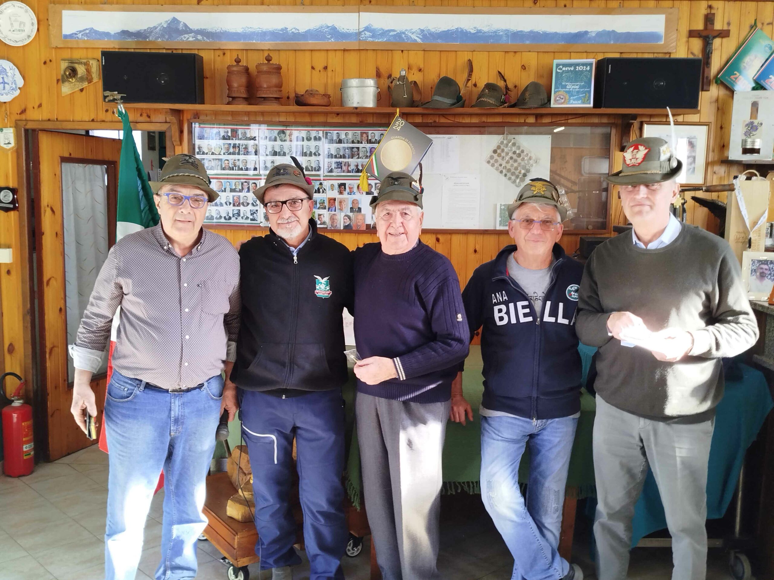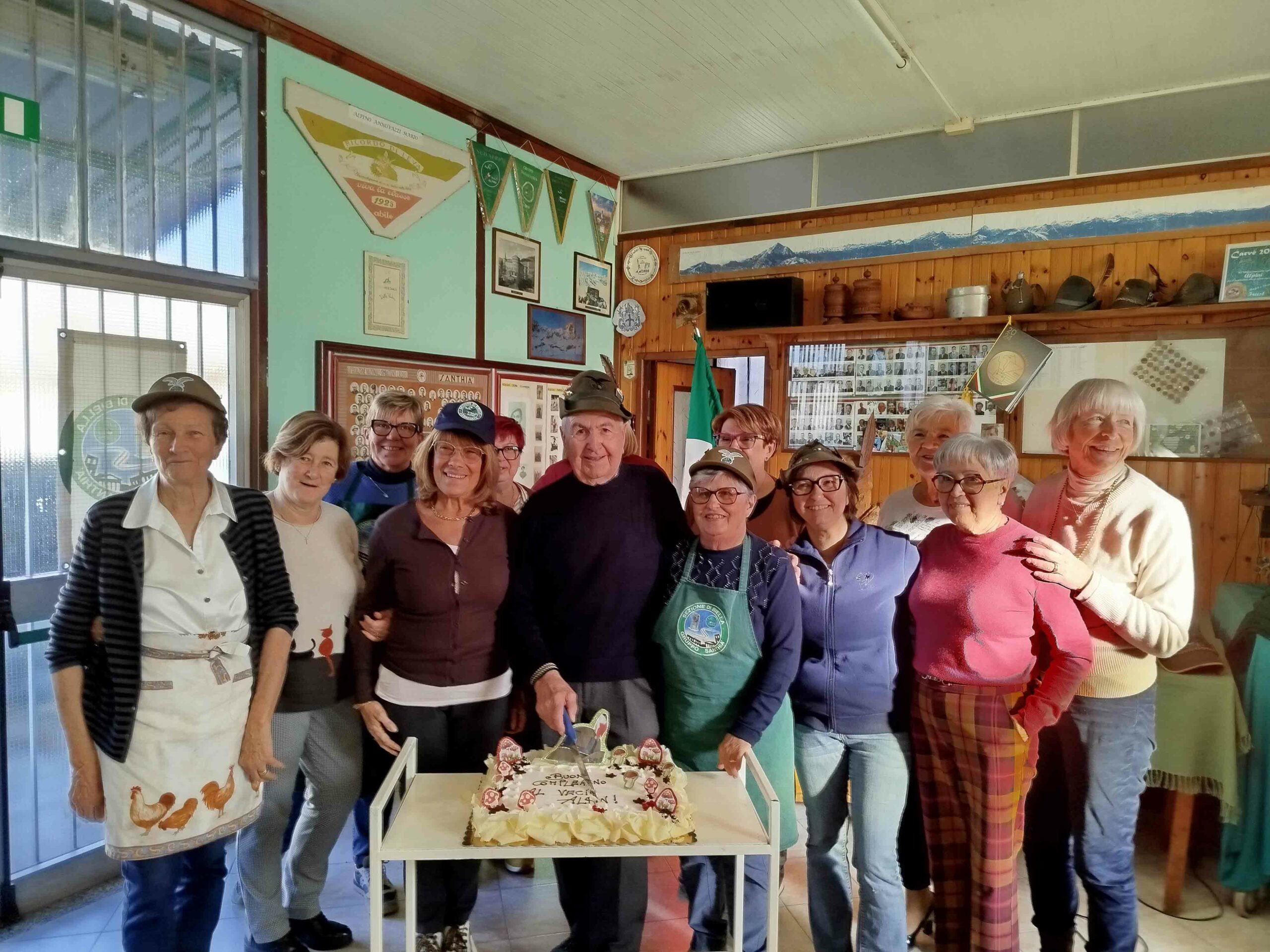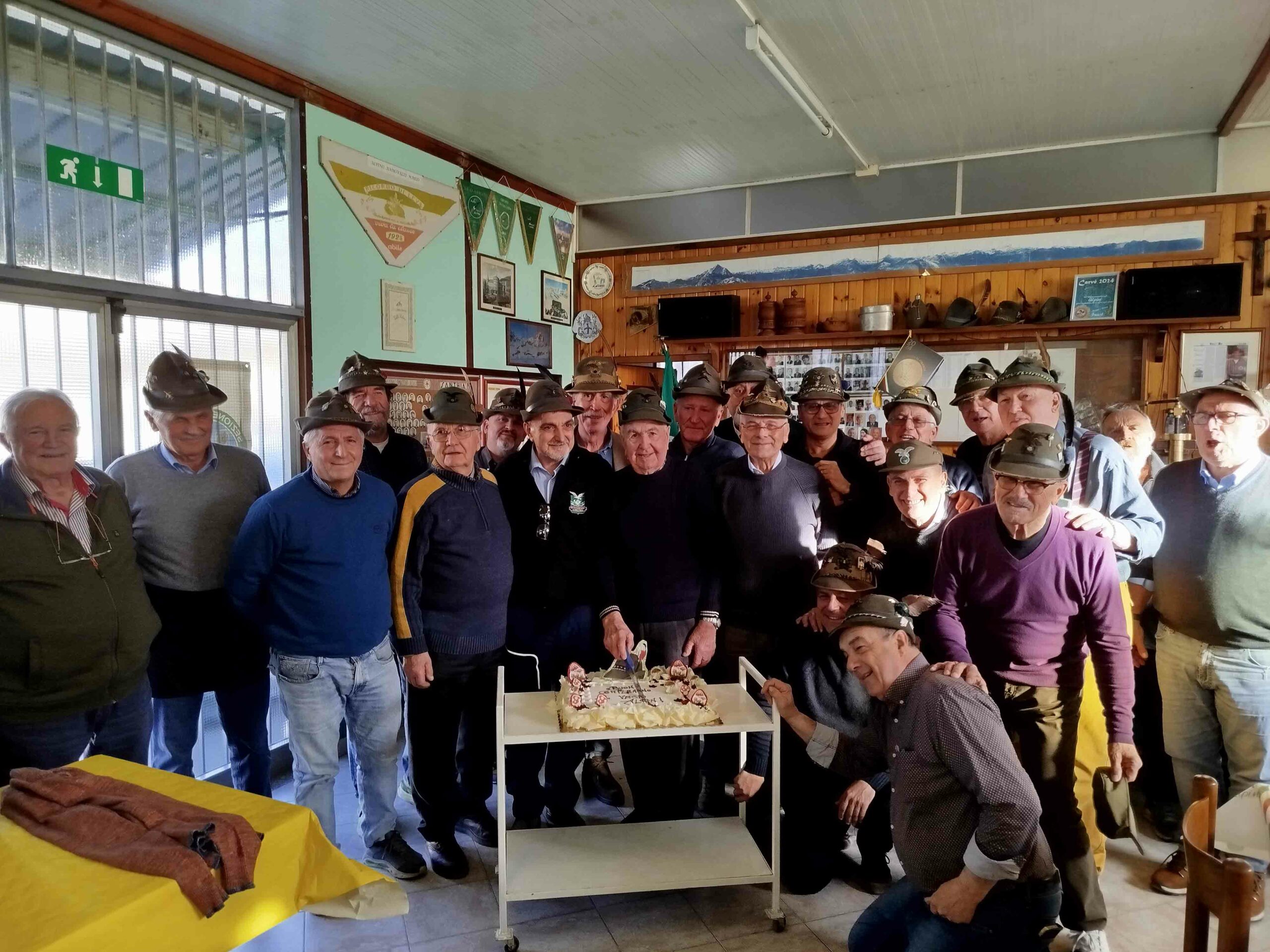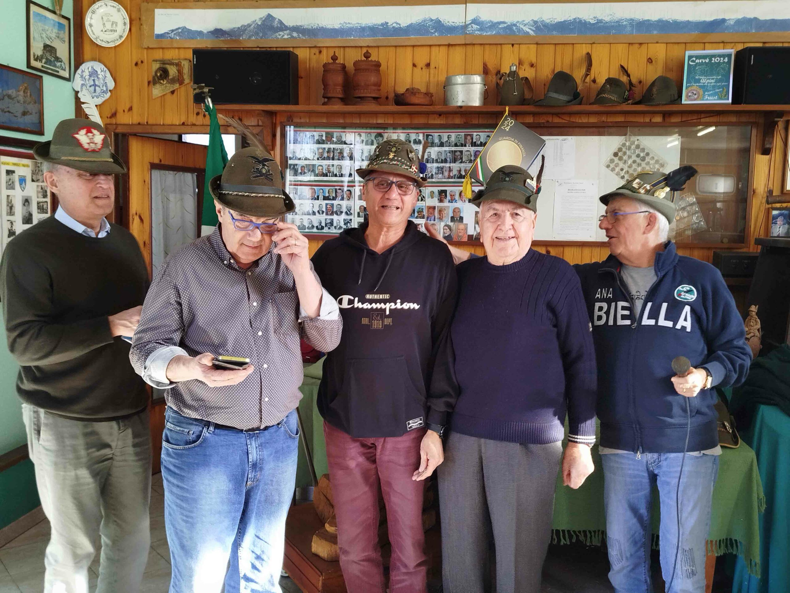 Domenica 23 Novembre, durante i festeggiamenti per i  90 anni del decano del gruppo di Santhià Primo Ruffilli, il capogruppo Beniamino Averono con i consiglieri sezionali Maurizio Bollea, paolo Racchi e Claudio Vercellotti, hanno consegnato la spilletta dell’adunata hai volontari impegnati durante l’adunata.